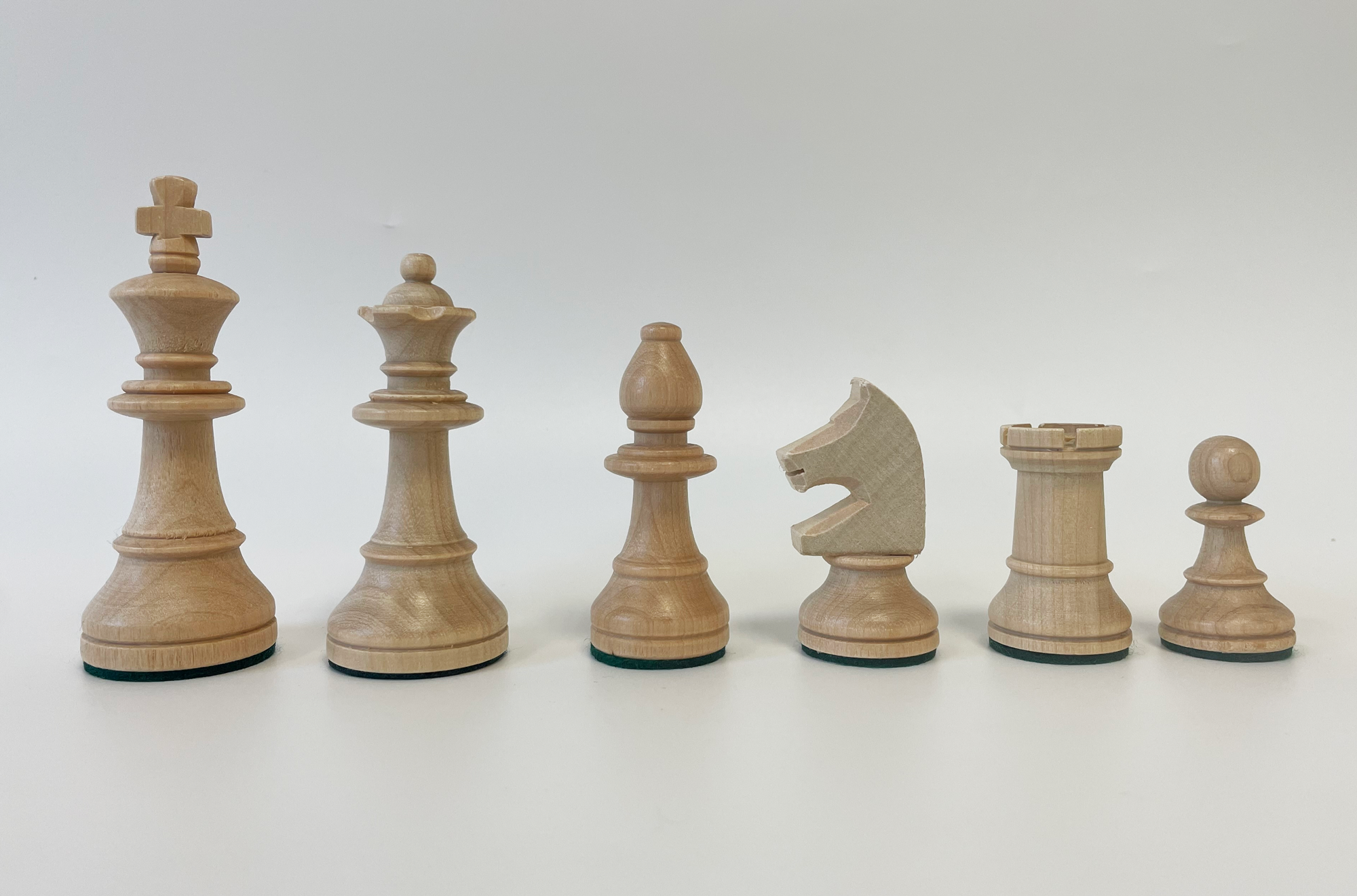 Schachfiguren Königshöhe 93 mm sind aus Holz in Deutschland hergestellt. Die Figuren haben einen Filzsockel und werden in einem Baumwollbeutel für die Aufbewahrung der Figuren geliefert.