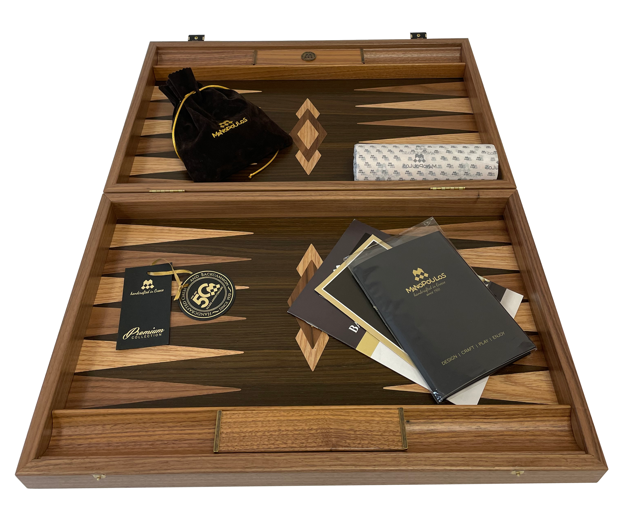 Backgammon Set Premium in Nussbaumholz, groß 48x30 cm